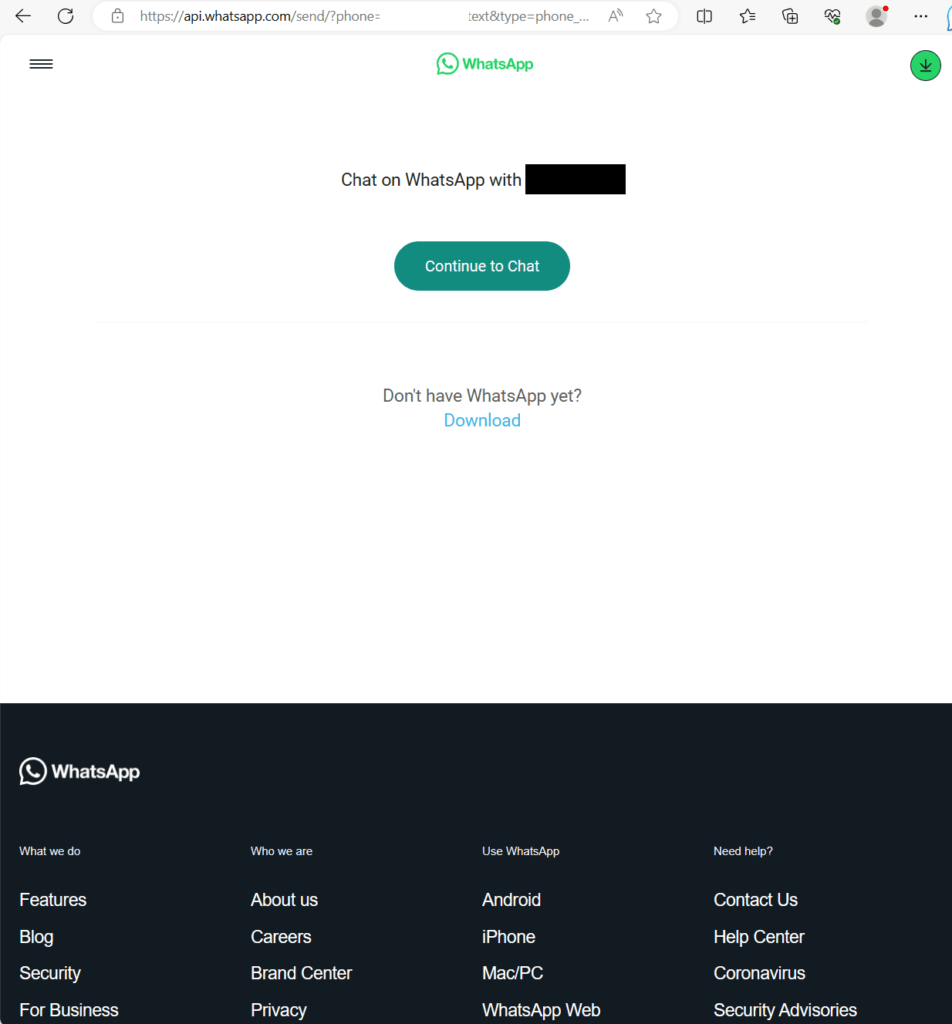 Otvorite preglednik (Chrome, Mozilla, Edge) i u polje za pretragu utipkajte https://wa.me/[brojtelefonakorisnika]